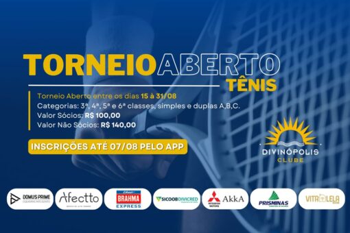 Prepare-se para mais uma rodada de grandes disputas no Divinópolis Clube! De 15 a 31 de agostoFinais de semana: 15, 16, 17 | 22, 23, 24 | 29, 30, 31 Torneio aberto com limite de participantes. Garanta sua vaga! Categorias disponíveis: Simples: 3ª, 4ª, 5ª e 6ª classes. Duplas:A: 2ª (sob consulta) com 3ª / 3ª com 3ª ClasseB: 3ª com 4ª / 4ª com 4ª ClasseC: 4ª com 5ª / 5ª com 5ª / 5ª com 6ª / 6ª com 6ª Classe Inscrições até quinta-feira (07/08)Sócios – pelo aplicativo do clubeNão sócios – pelo whatsApp (37) 9 9922-2220 com o coordenador Ailton Valores:Sócios: R$ 100,00Não sócios: R$ 140,00 S...